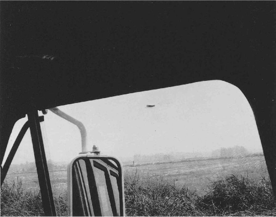 With all that going on, Mr. Heflin kept his cool. He trained the Polaroid 101 Land Camera on what was passing in front of his work truck. In doing so, Heflin captured three clear images of what appear to be a machined, intelligently controlled object of unknown origin, a genuine flying saucer.