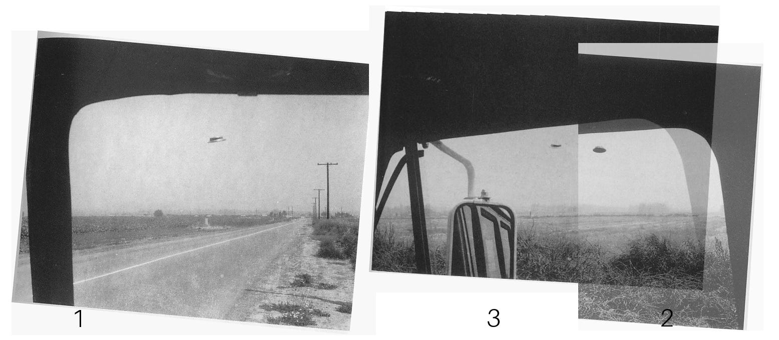 Even in the easiest of circumstances, using the early Polaroid cameras required a thorough understanding of the picture-taking machine and the instant photographic process. Imagine doing so while watching a flying saucer from a few hundred feet away? Who could look away to grab a camera?