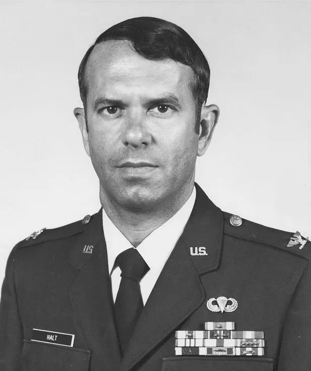 The following evening, Col. Charles I. Halt, USAF (Ret.) heard the “UFOs had returned.” Then serving as deputy base commander of Joint RAF/USAF Base Bentwaters, Col. Halt personally led a team of Air Force personnel into the forest to investigate.